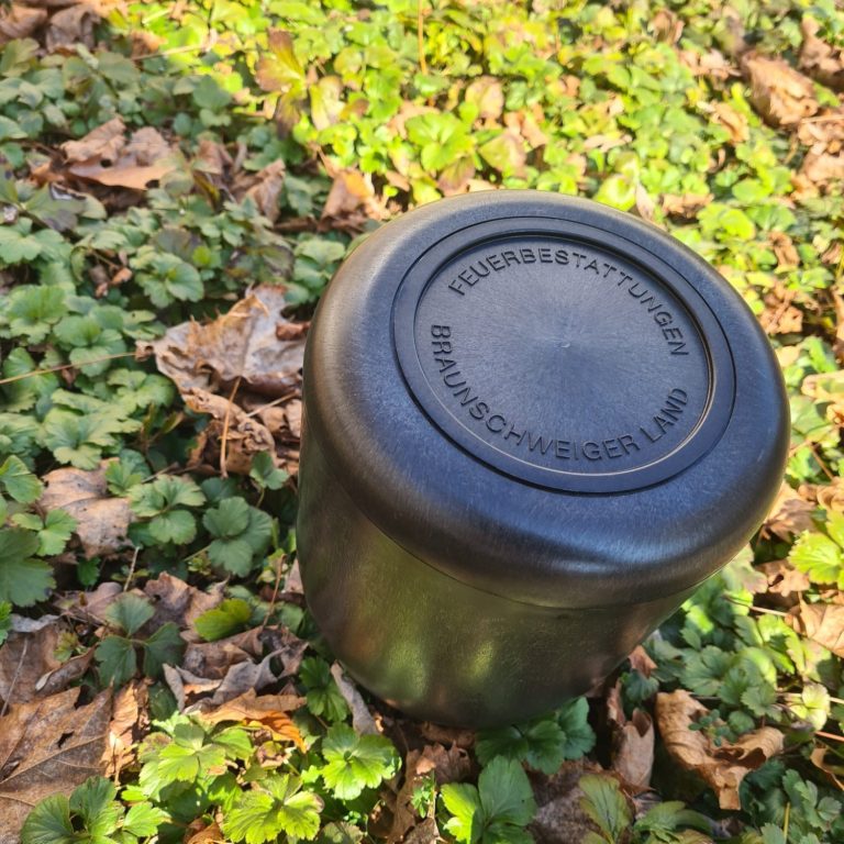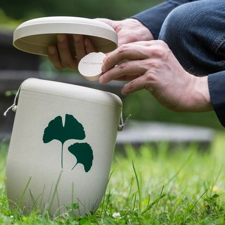 Die Aschekapsel besteht aus Zellulose-Verbundstoff und ist zu 100% biologisch abbaubar. Die Kapsel wird in einer Urne beigesetzt, die Sie sich bei Ihrem Bestatter aussuchen.